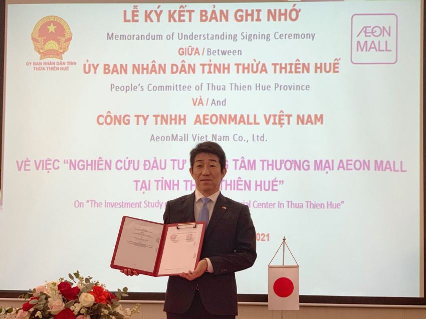 Đây là lời cam kết của đại diện Công ty TNHH AEON MALL tại Hội nghị xúc tiến đầu tư Việt Nam - Nhật Bản diễn ra tại Nhật Bản vào ngày 25/11 vừa qua. Theo đó, Chủ tịch UBND tỉnh Thừa Thiên - Huế và Công ty TNHH AEON MALL Việt Nam đã trao Văn kiện Bản ghi nhớ về Quyết định đầu tư Trung tâm thương mại (TTTM) tại tỉnh này với mức đầu tư lên đến 170 triệu USD. Bản ghi nhớ nhằm tăng cường sự hợp tác giữa tỉnh Thừa Thiên - Huế và Công ty TNHH AEON MALL Việt Nam để đầu tư TTTM AEON MALL tại tỉnh, với tiêu chuẩn Nhật Bản. Qua đó, góp phần nâng cao chất lượng, dịch vụ và điều kiện sống cho người dân, nhà đầu tư, doanh nghiệp đến đầu tư, kinh doanh và sinh sống trên địa bàn tỉnh.