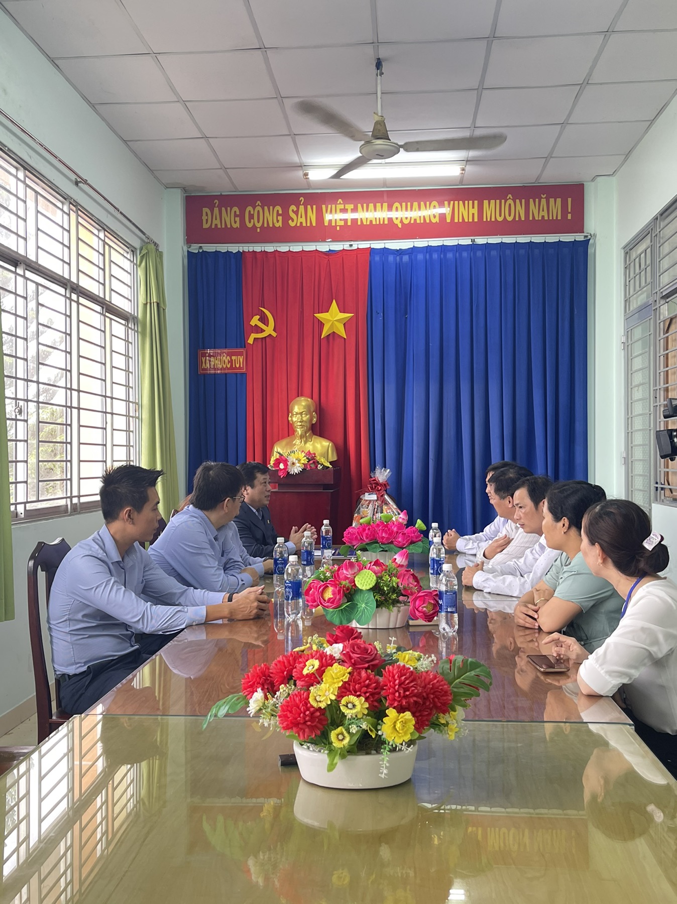 Đại diện Công ty trao đổi với đại diện chính quyền địa phương về công tác an sinh xã hội trong dịp Tết Nguyên đán Quý Mão năm 2023