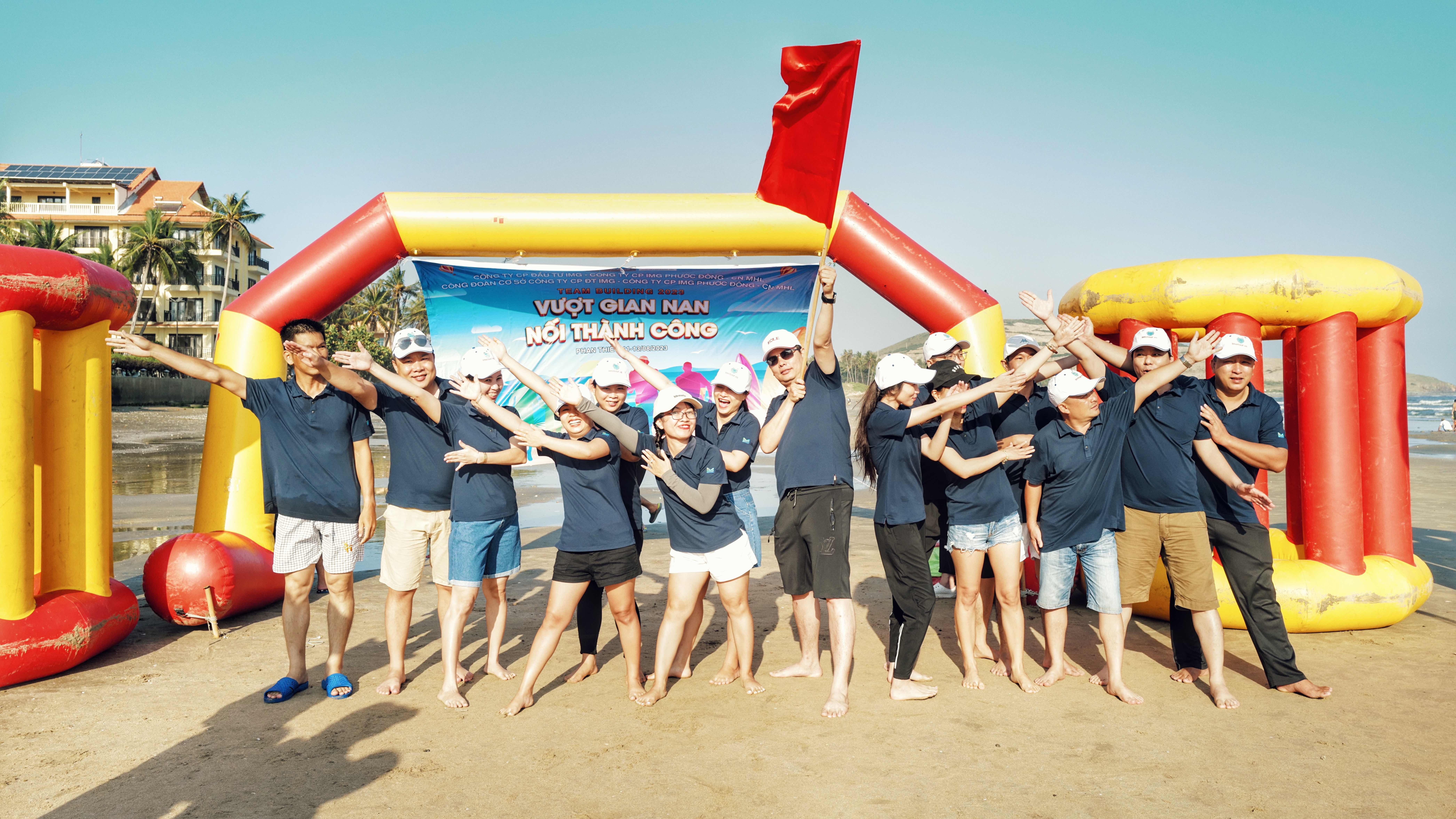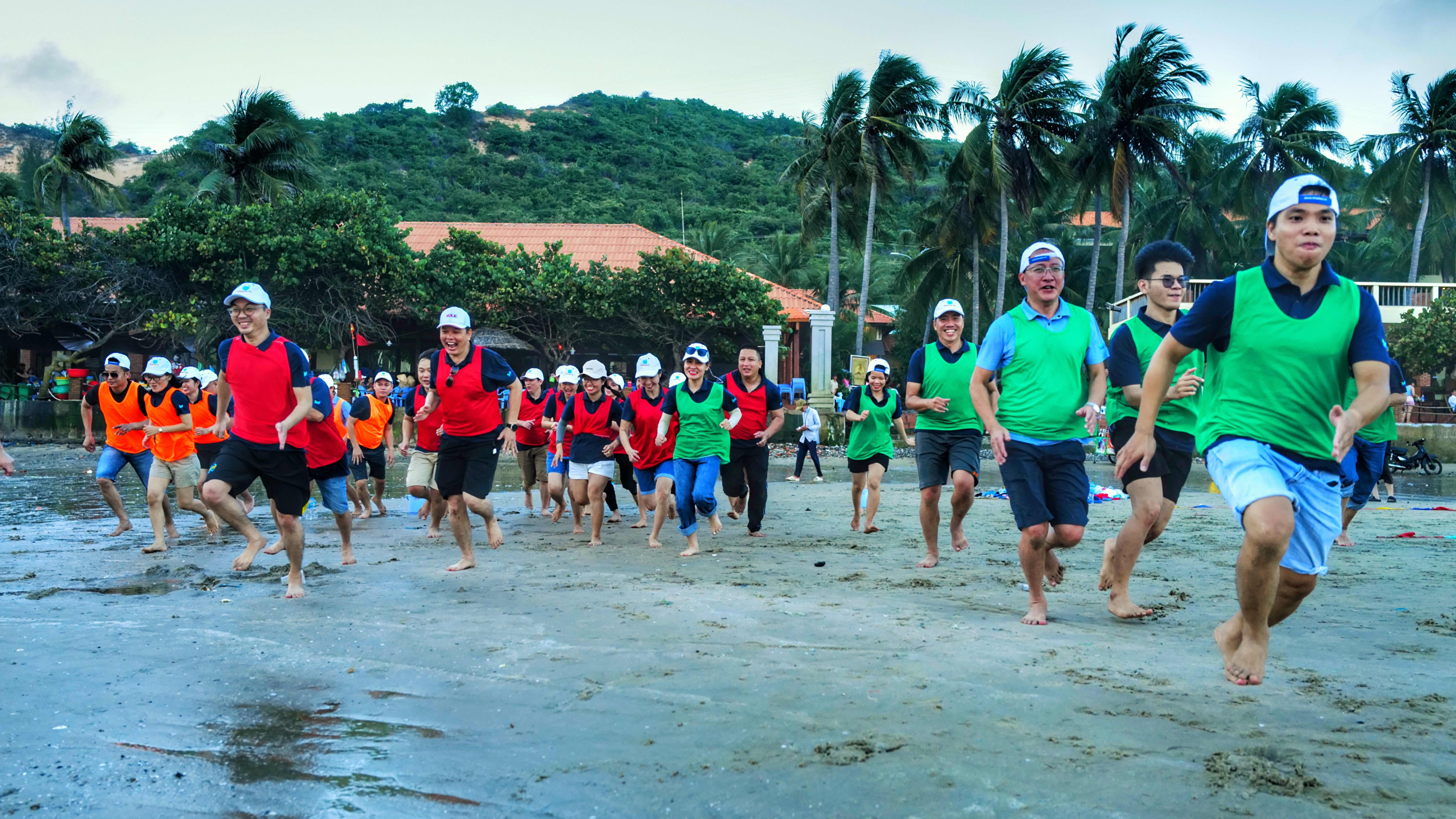 After checking in and resting, the company members participated in a campfire held on the beach. This was a fun and warm activity, when everyone gathered around the fire, sang, told stories and enjoyed delicious dishes such as grilled seafood, grilled rice paper, grilled sweet potatoes... The campfire lasted until late at night, making everyone feel close and happy. The next day, after breakfast at the hotel, the company members participated in team building activities at Phan Thiet beach. This was an activity to practice teamwork skills, enhance understanding and cooperation among members. Team building activities included games such as tug of war, sand building, beach running... Each game brought joy and laughter to everyone. The company members tried their best to win for their team.