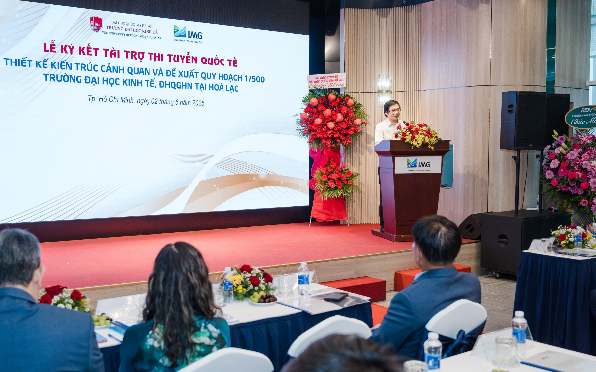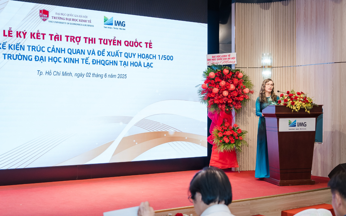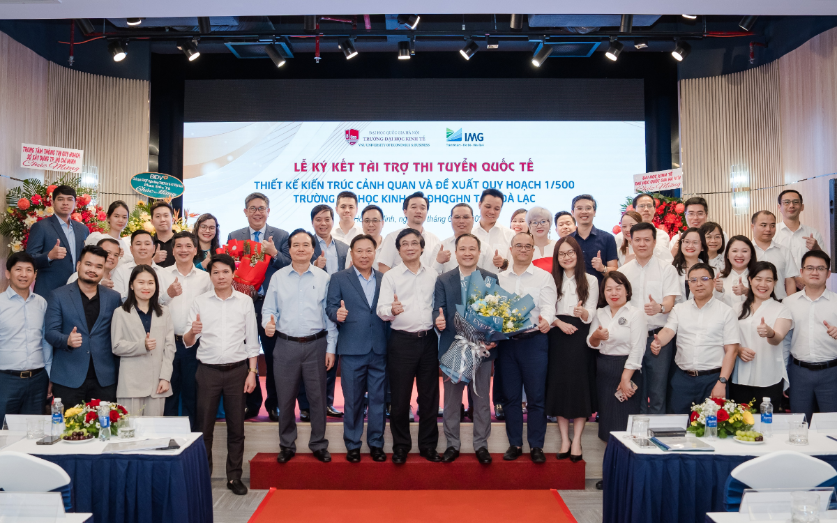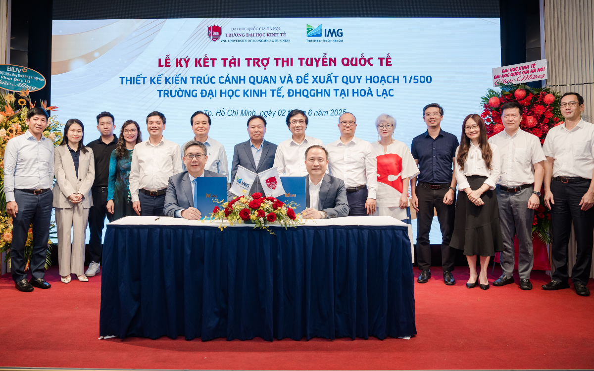 TP. Hồ Chí Minh, ngày 02/06/2025 - Công ty Cổ phần Đầu tư IMG (IMG) và Trường Đại học Kinh tế, ĐHQGHN (UEB) đã ký kết Hợp đồng tài trợ thi tuyển quốc tế “Thiết kế kiến trúc cảnh quan và đề xuất quy hoạch 1/500 Trường Đại học Kinh tế tại Hòa Lạc” với giá trị 10 tỷ đồng. Sự kiện đánh dấu cột mốc hợp tác chiến lược, hướng tới xây dựng không gian giáo dục thông minh, bền vững.