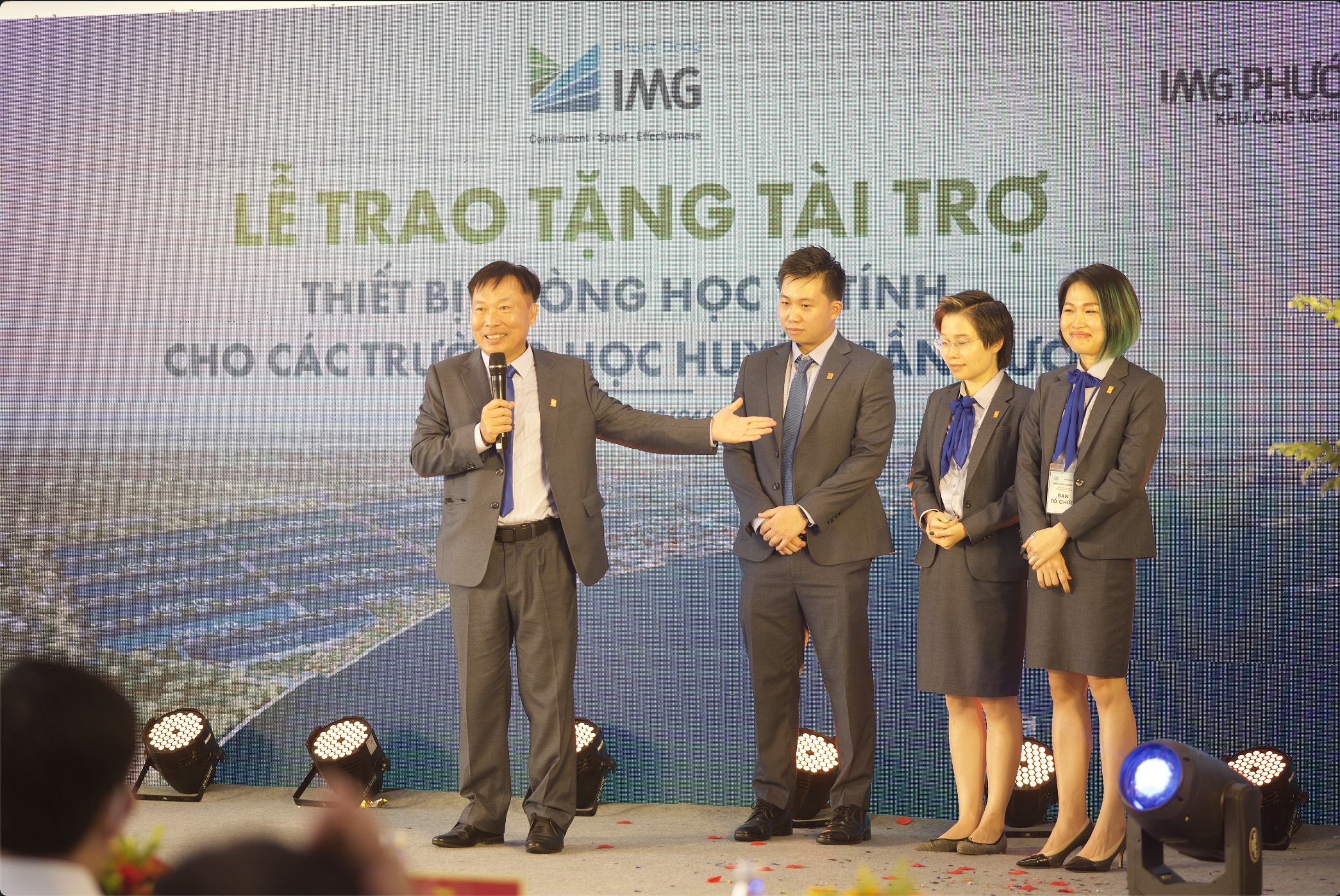 According to the investor, social security support is also one of the top goals in parallel with the economic development of Phuoc Dong Port Industrial Park. Also in the ceremony, IMG Phuoc Dong sponsored computer room equipment for 3 schools in Can Duoc district: Duc Hoa High School, Nguyen Huu Tho High School, Can Duoc High School and committed to build 2 bridges for the district. Can Duoc.