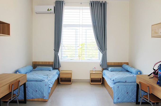 The center is built on a plot of 354 square meters within the An Cựu City project, under IMG Huế Investment Corporation, with a usable area of over 780 square meters. It has a modern 4-story architectural design with a total investment of over 1 million USD. The first floor includes the director's office, working rooms, classrooms, dining room, kitchen, and garage. The second and third floors have 14 rooms in total, with 12 being bedrooms for the children and 2 for the management staff. The fourth floor consists of a multifunctional room and an outdoor playground. The classrooms are equipped with projectors, computers, air conditioning, and other modern facilities to help the children study and improve their skills. Each bedroom houses two children, and each child has their own private study space. The center is located near a swimming pool, football field, and tennis court, allowing the children to relax after studying and fully develop physically.
