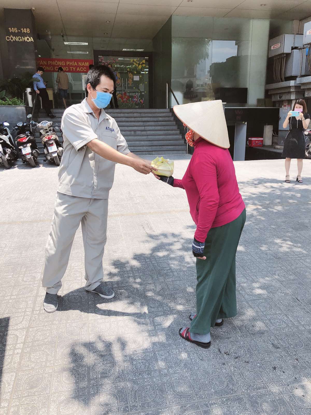 At around 10 o'clock every day, many disadvantaged people come to the ATHENA Office Building, at 146-148 Cong Hoa Street, Ward 12, Tan Binh District to receive free meals.