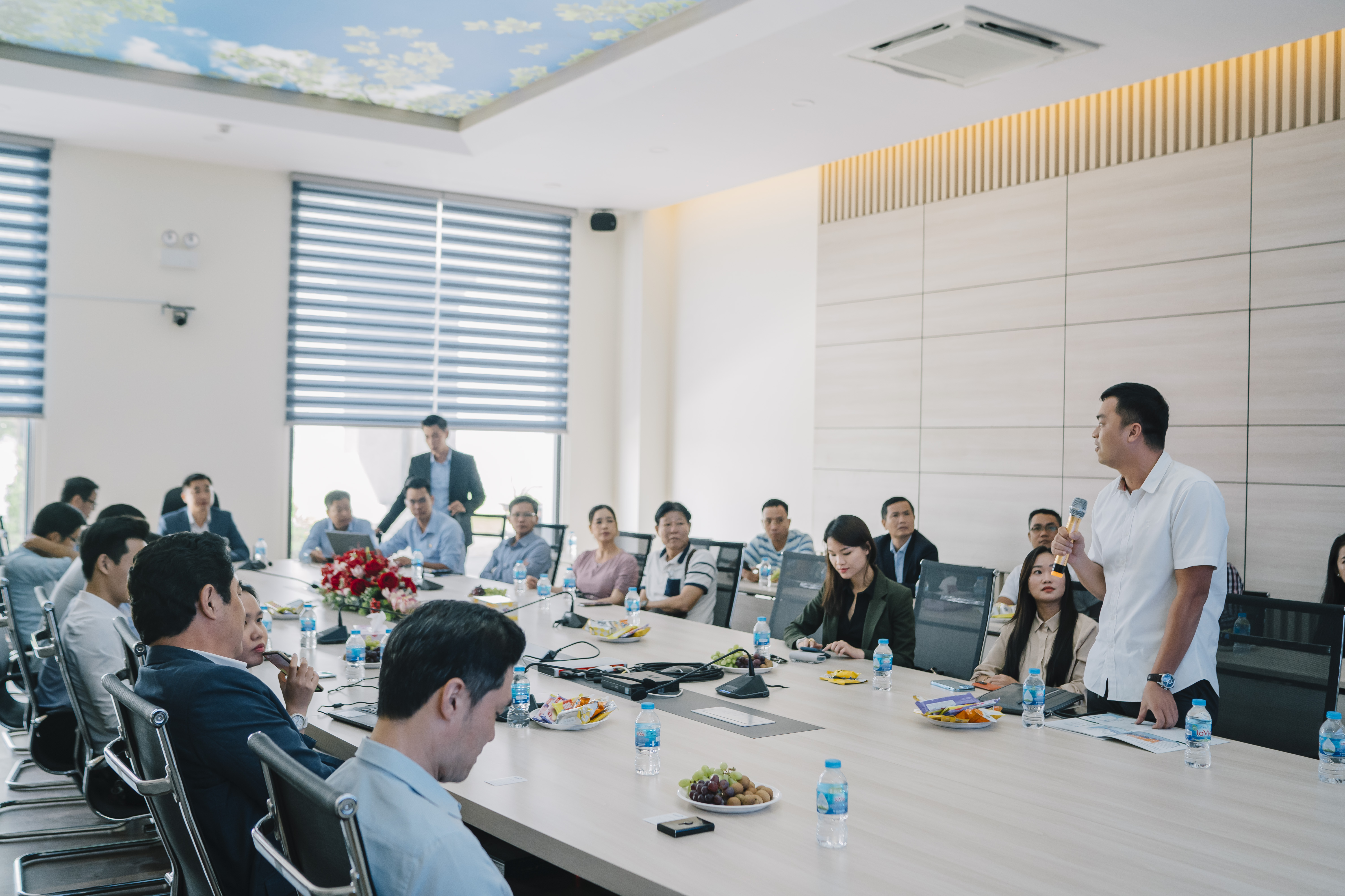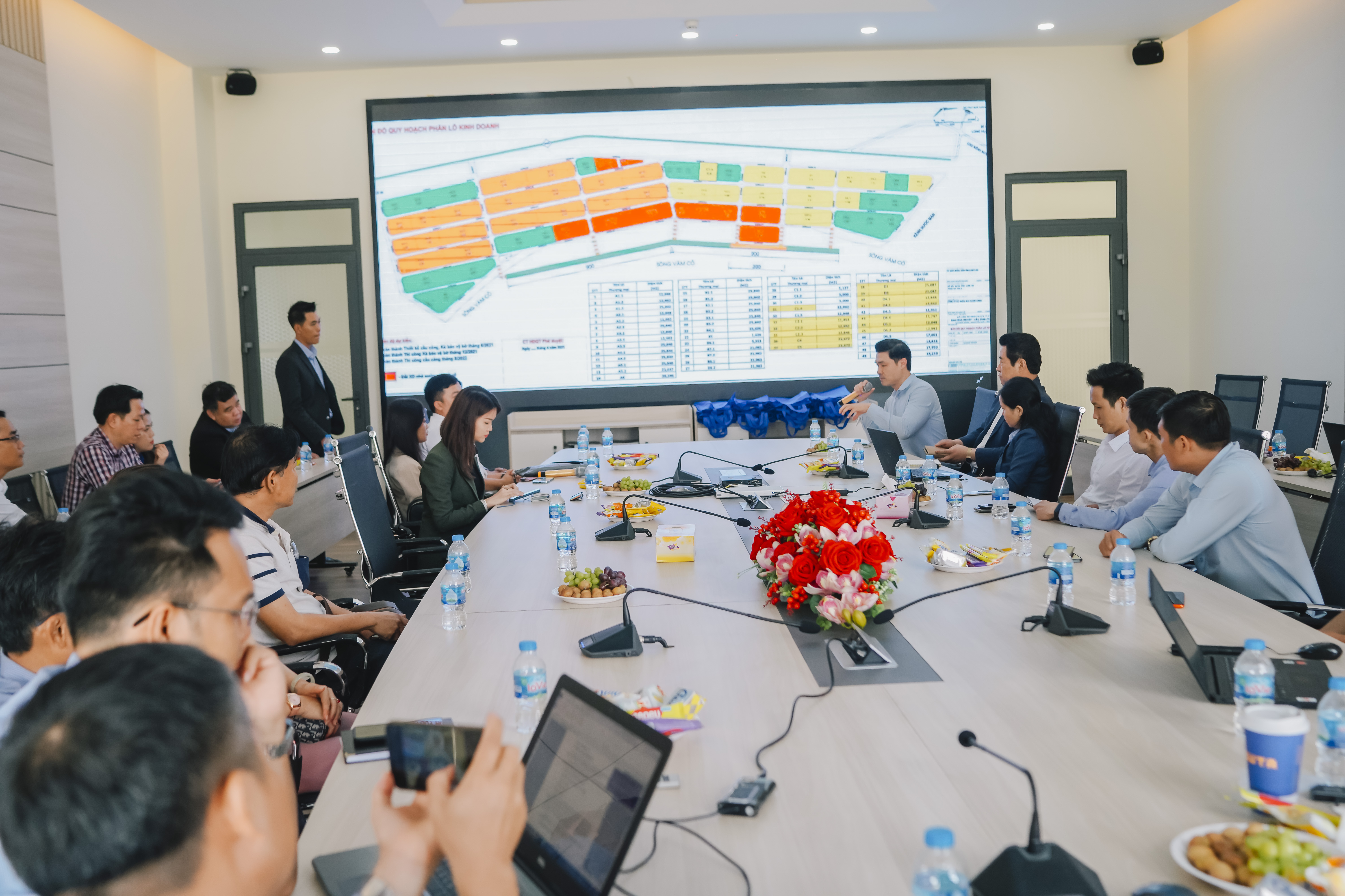 Ông Nguyễn Minh Tự - Phó P.KTDA đại diện phòng kỹ thuật giải đáp các thắc mắc về các vấn đề kỹ thuật tại KCN Cầu cảng Phước Đông The event took place in an open atmosphere of exchange and connection with major investors, creating opportunities for future cooperation. Lunch was at 11:30 at Hoan Tan restaurant and the event ended at 15:00 on the same day.
