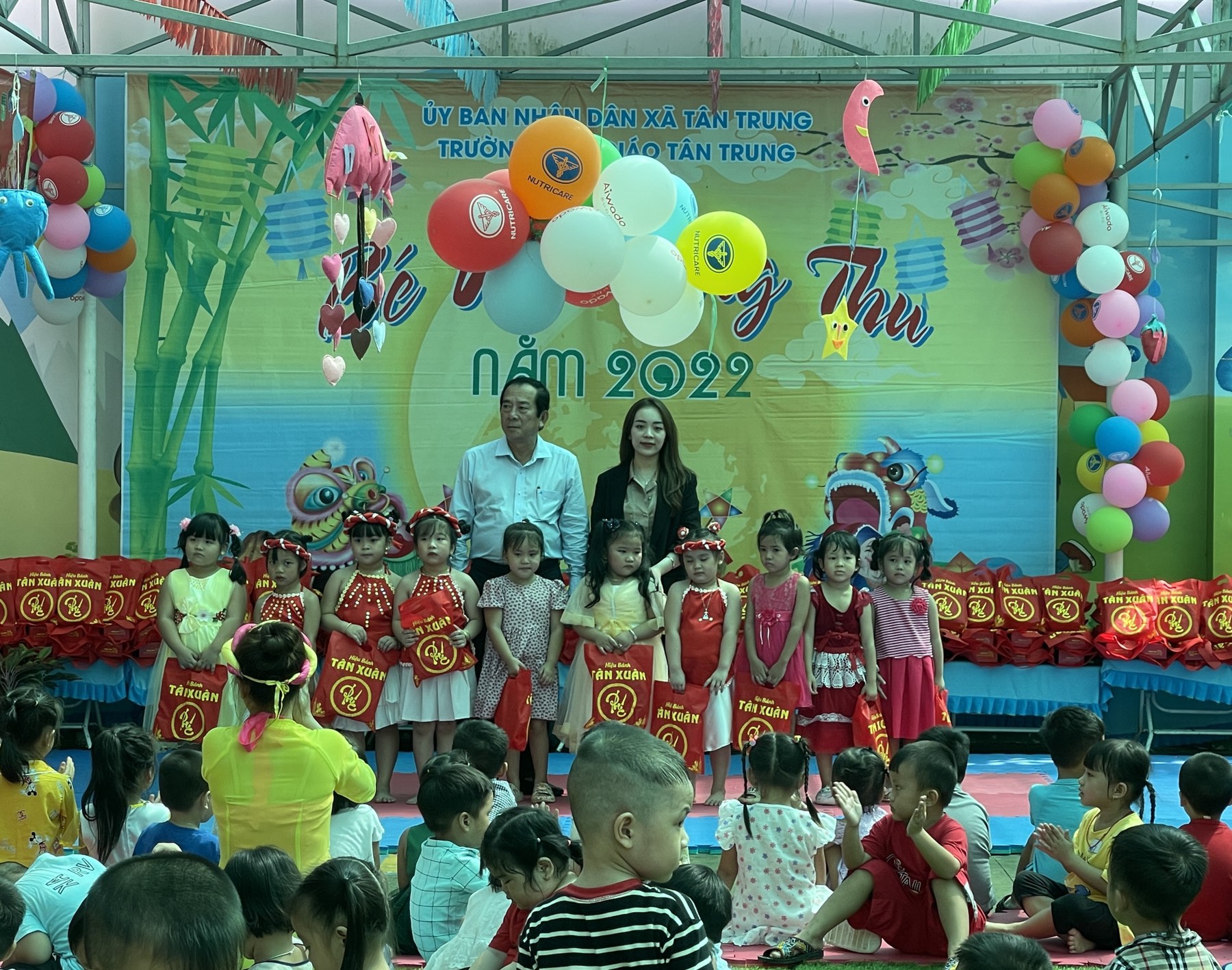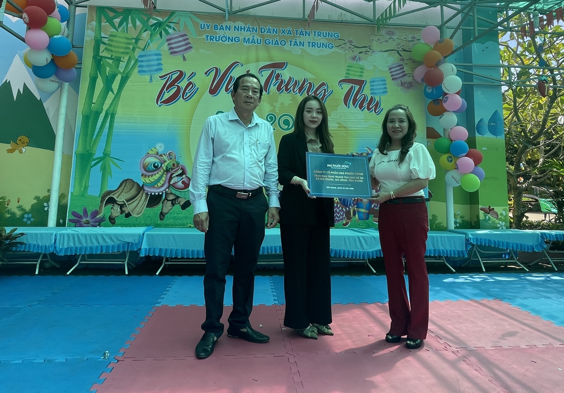 Hòa cùng không khí thiếu nhi cả nước đón Tết Trung thu, ngày 9/9/2022, tại Trường Mẫu giáo Tân Trung, đại diện lãnh đạo Ủy ban nhân dân (UBND) xã Tân Trung, huyện Gò Công tỉnh Tiền Giang và đại diện Công ty Cổ phần IMG Phước Đông đã đến tặng quà Trung thu cho 320 thiếu nhi trên địa bàn xã.